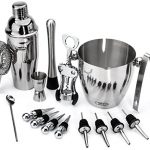MIX LIKE A PRO with THIS FUN AND EASY TO USE 16-PIECE WINE AND COCKTAILS BAR SET -This complete Wine and Cocktail Bartender set contains 25oz martini shaker, stainless steel ice bucket, tongs, wine openers, strainer, stirrer, double jigger, muddler and 4 wine pourers. You can mix like a pro with these bar accessories and enjoy the improved taste of Scotch, Cognac, Tequila, Whiskey, Bourbon, Vodka, Gin, Rum, Brandy and Mixers like never before with this bar tool set!
