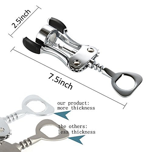 Built-in bottle opener.Sturdy lever arms provide easy cork removal.