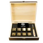 Package contains: 8 pc’s of gold Titanium plated stainless steel rocks, a velvet bag and a tong packed in a gift wood box